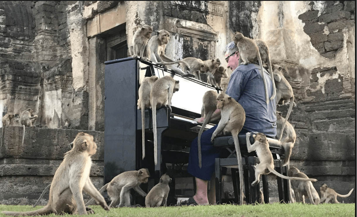 Monkeys are his latest audience, having played Bach, Schubert, Chopin, and Beethoven for more than a decade to elephants at retirement sanctuaries.