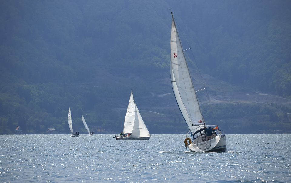 Hundreds of boats line up on Lake Geneva in border art project